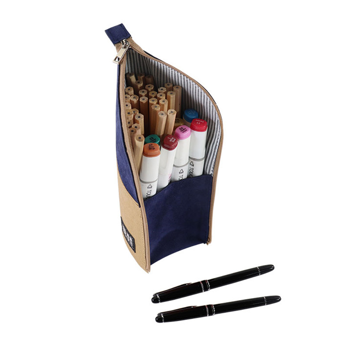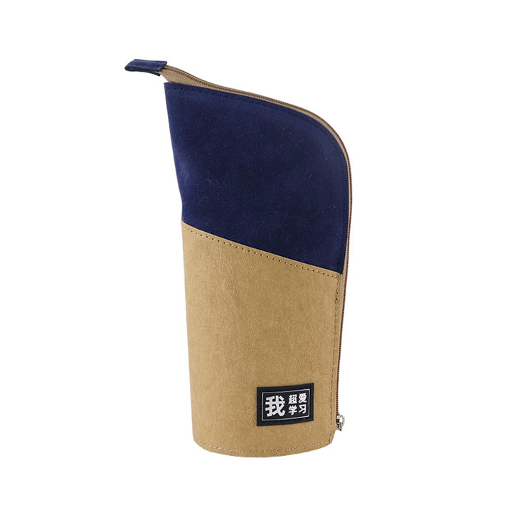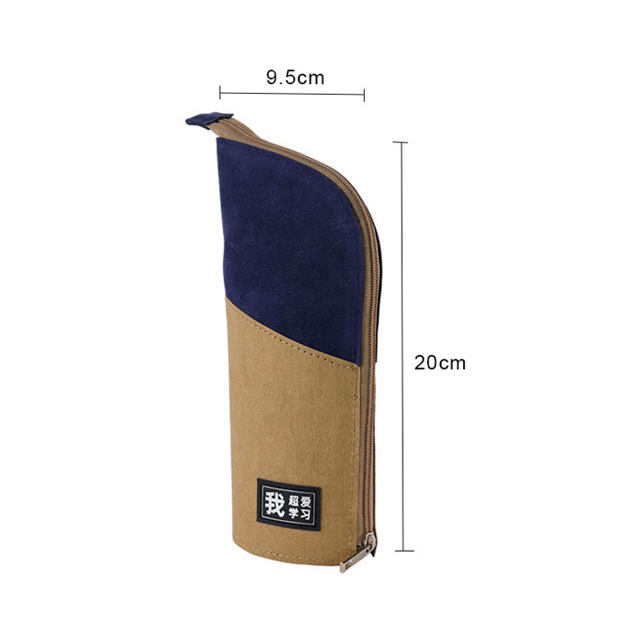 筆袋筆筒二合一多功能牛皮紙拼接桃皮絨素描鉛筆袋定制logo