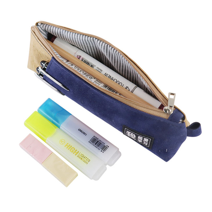 男學(xué)生可定制筆袋簡約卡通牛皮紙文具包定做圓筒筆袋
