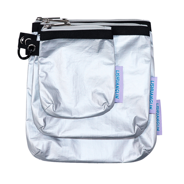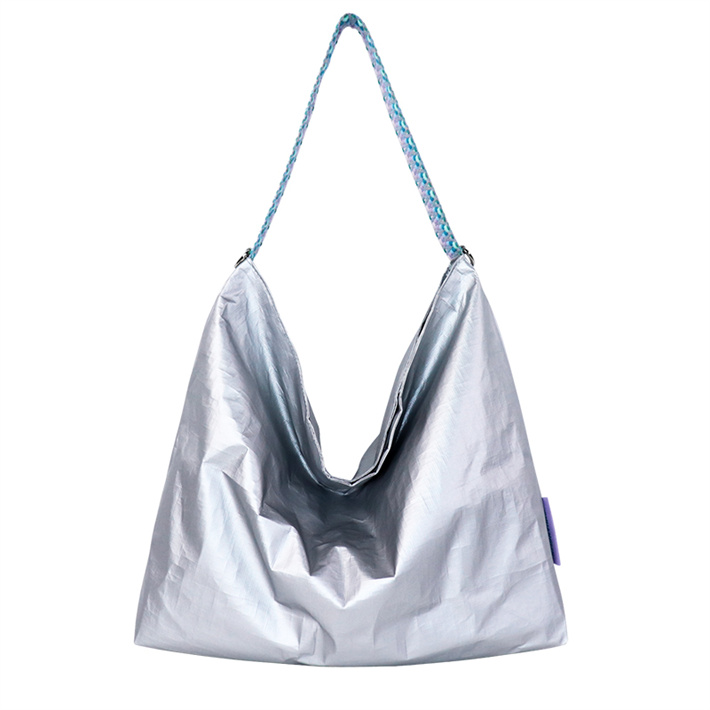 揉紋tyvek輕便色透明pvc杜邦紙斜挎包 撞色織帶單肩手提包定制