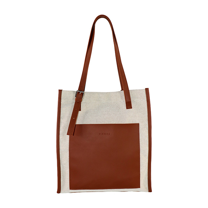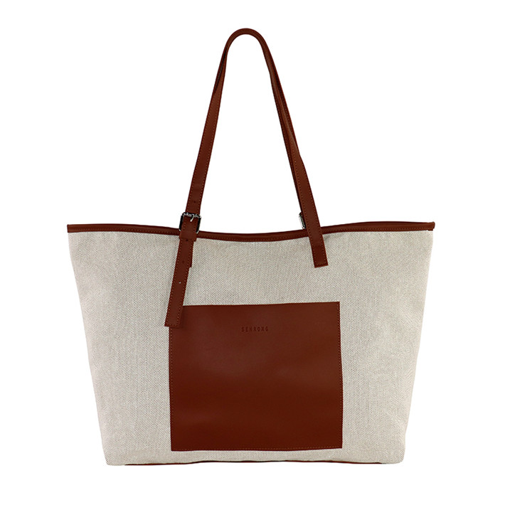canvas bags典復古水洗PU撞色托特帆布包定制 簡約單肩手提袋