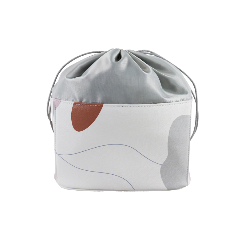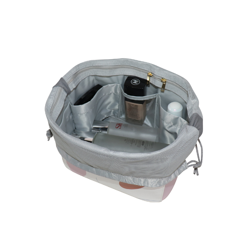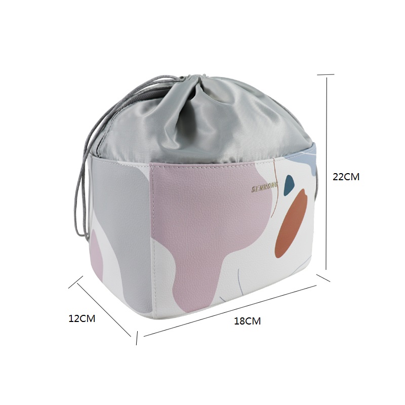 大容量碎花化妝包 懶人抽繩束口PU皮革內(nèi)膽包 防水母嬰用品收納包