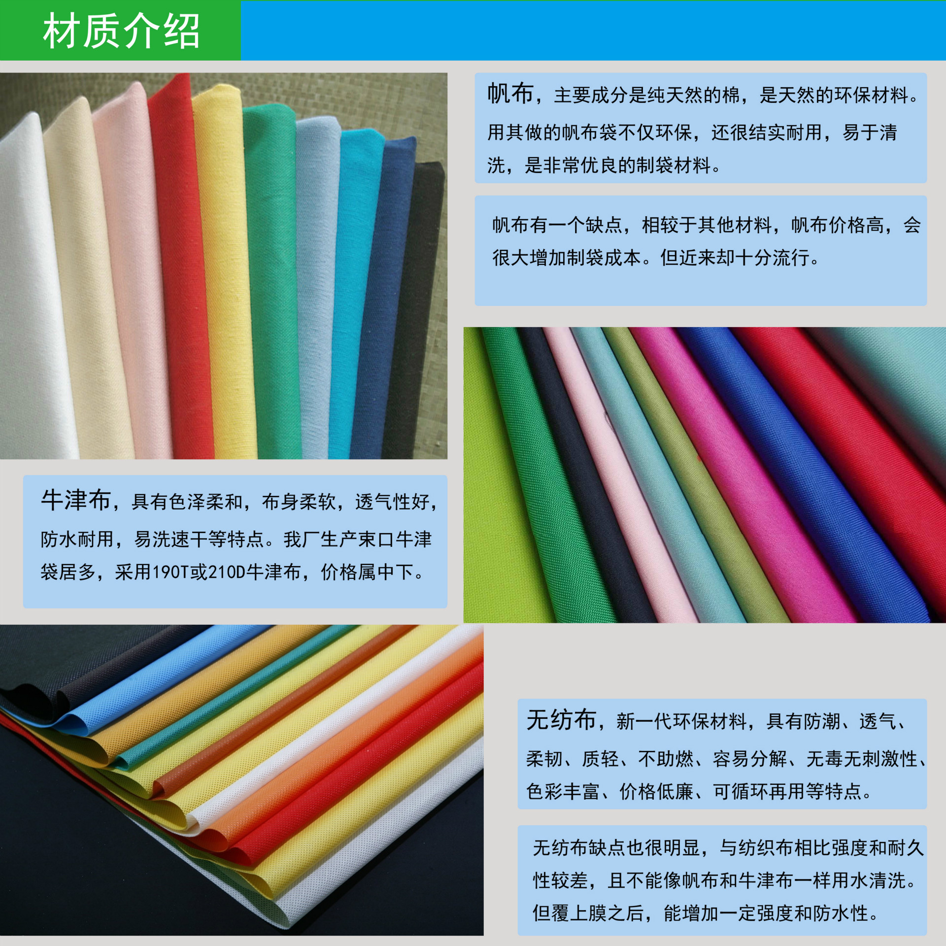 帆布、牛津布、無紡布材質(zhì)特點介紹、特性分析,定做袋子材質(zhì)選擇