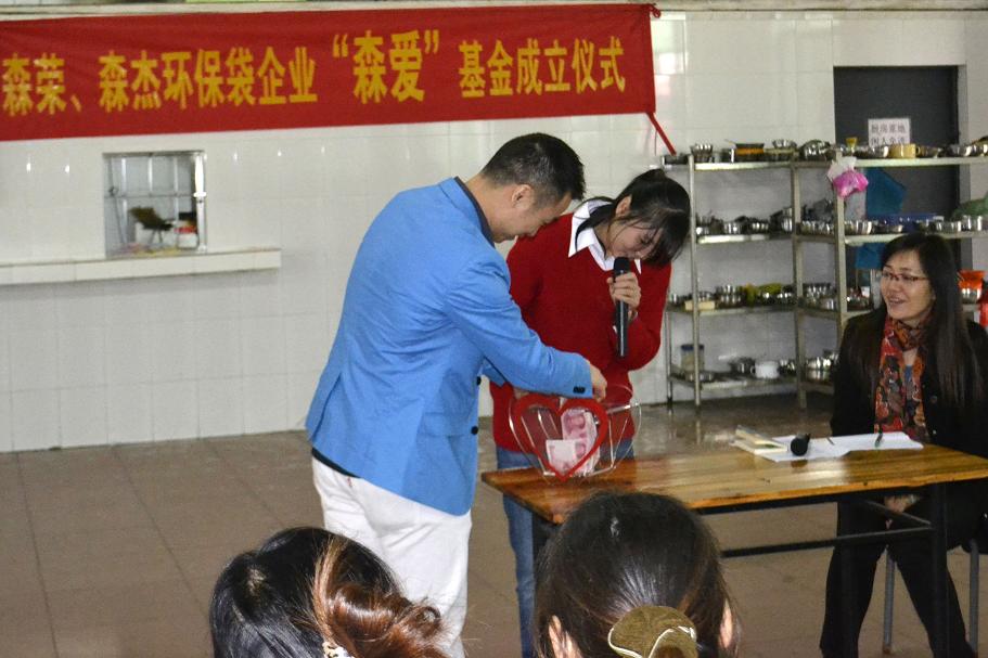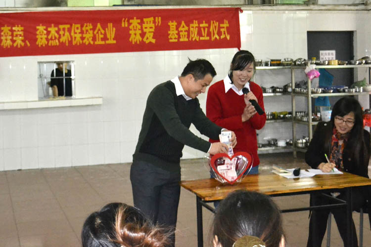 2012年12月3日這一天廣州市森榮手袋制造有限公司、廣州森杰無(wú)紡布制品實(shí)業(yè)有限公司正式成立“森愛(ài)基金”。