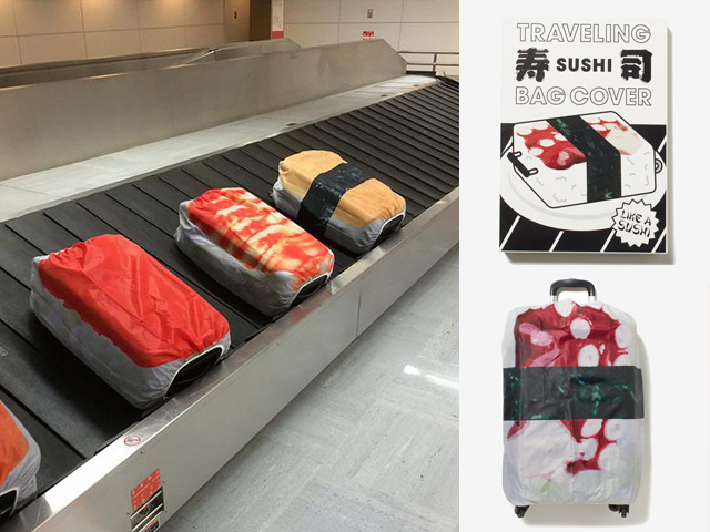 千奇百趣!日本人的創(chuàng)意真系無(wú)極限。上年有公司推出了防水的壽司行李箱套,當(dāng)中有蛋、金槍魚(yú)、三文魚(yú)以及蝦壽司。行李急穿上新衣后出現(xiàn)在行李輸送帶,就如放大版的迴轉(zhuǎn)壽司,好抵死!